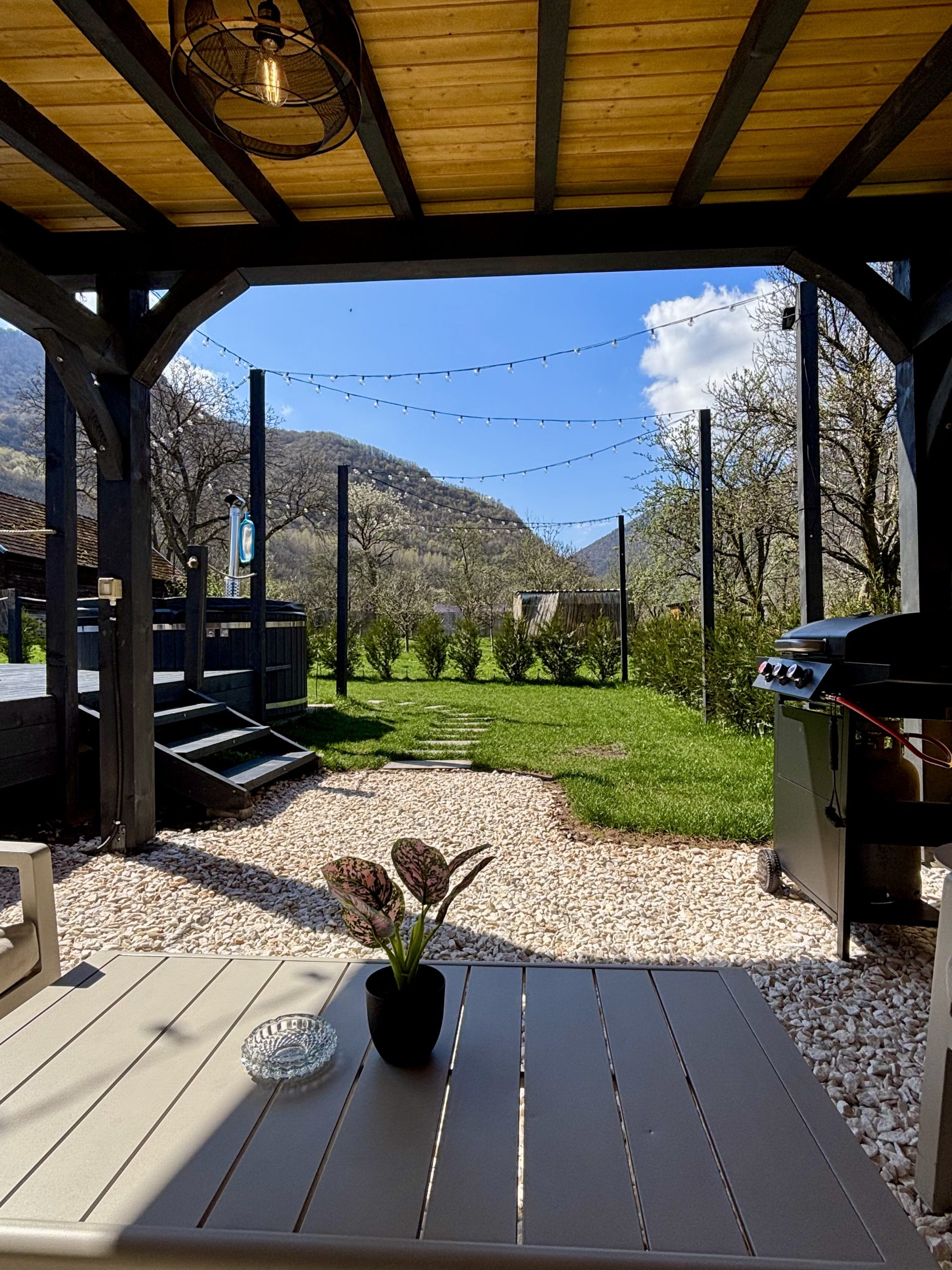 Fie că îți dorești o cină în doi sub lumina stelelor, gătită pe grătarul nostru tip pyramide, sau o seară de neuitat cu un pahar de vin roșu în mână, fiecare detaliu este gândit pentru a îți oferi momente de neprețuit. Camerele sunt încăpătoare, cu un design modern și elegant, Cada freestanding promite să îți ofere clipe memorabile de răsfăț si asta nu e tot! În interior ai o baie privata si o bucatarie complet utilată